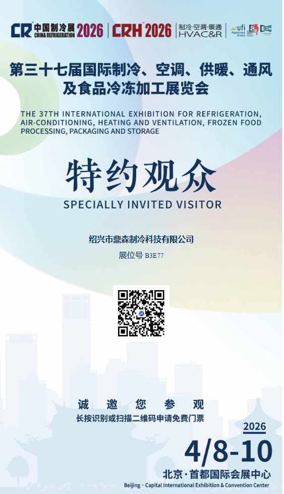 في الفترة من 8 إلى 10 أبريل 2026، ستشارك شركة Shaoxing DingSen Refrigeration Technology Co., Ltd. في المعرض الدولي السابع والثلاثين للتبريد وتكييف الهواء والتدفئة والتهوية في مركز بكين الدولي للمعارض والمؤتمرات. يجمع هذا المعرض بين التقنيات والابتكارات الرائدة عالميًا في مجال التبريد وتكييف الهواء والتدفئة والتهوية ومعالجة الأغذية المجمدة وتعبئتها وتخزينها.