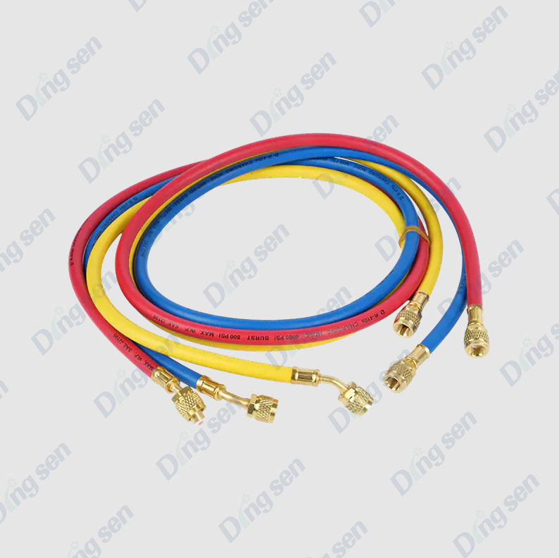 أثناء إصلاح وصيانة مكيفات الهواء، خرطوم تعبئة الفلور (المعروف أيضًا باسم خرطوم تعبئة غاز التبريد بالفلور) يعمل كجسر يربط أسطوانة غاز التبريد ومجموعة قياس الضغط المشعب ونظام تكييف الهواء. تُصنع خراطيم تعبئة الفلور عالية الجودة عادة من المطاط الصناعي مع بطانة داخلية مضفرة لتحمل الضغط العالي، كما أن وصلاتها مجهزة بحشيات مانعة للتسرب لضمان عدم تسرب مادة التبريد أثناء عملية الشحن.
