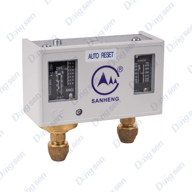 يتميز جهاز التحكم في ضغط التبريد بصندوق مستطيل الشكل مع غلاف بلاستيكي أبيض مق...